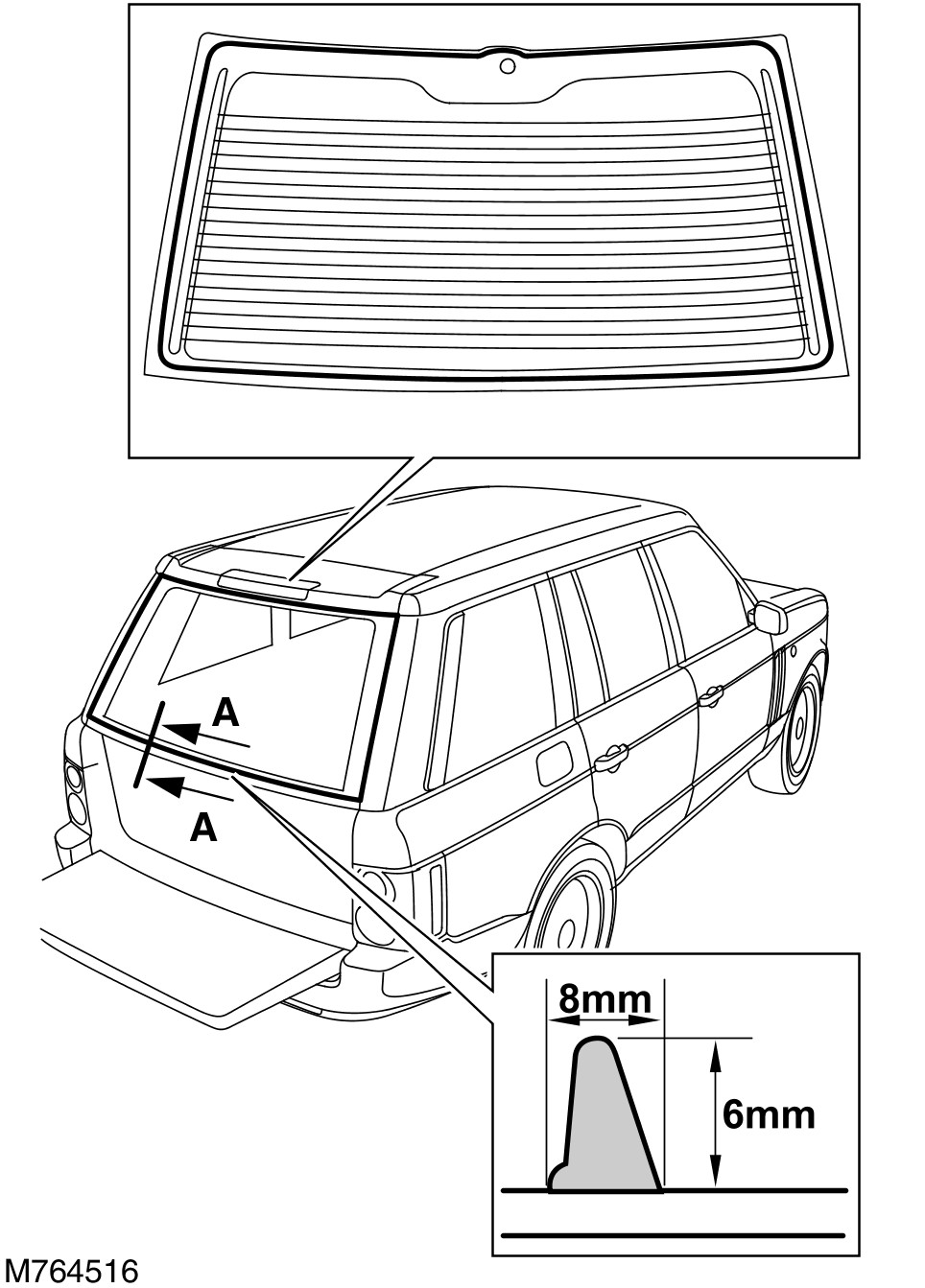 11 Apply a continuous bead of sealant to the liftgate window glass as shown.
