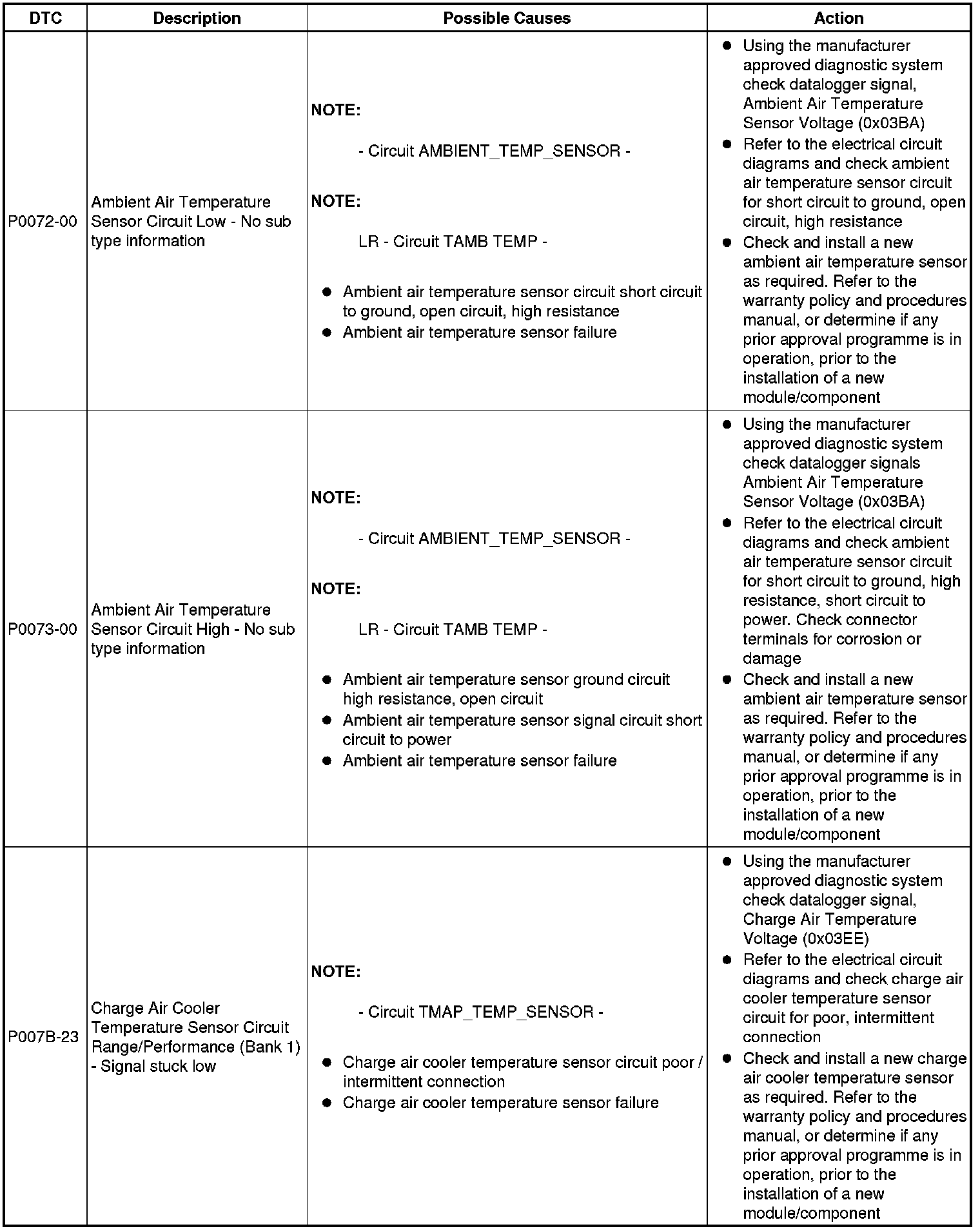 The table below lists all Diagnostic Trouble Codes (DTCs) that could be logged in the Engine Control Module, for additional Diagnosis and Testing information refer to the relevant Diagnosis and Testing Section. For additional information, refer to Electronic Engine Controls