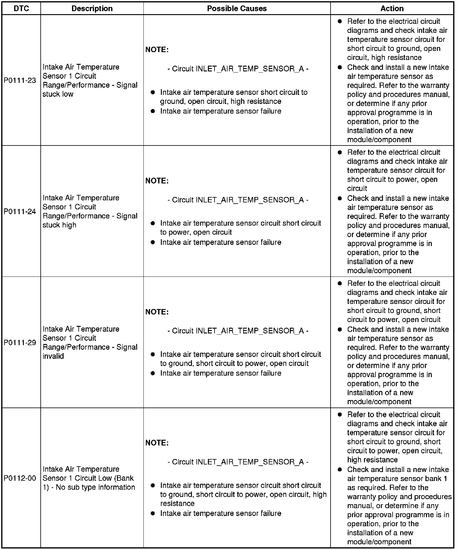 The table below lists all Diagnostic Trouble Codes (DTCs) that could be logged in the Engine Control Module, for additional Diagnosis and Testing information refer to the relevant Diagnosis and Testing Section. For additional information, refer to Electronic Engine Controls