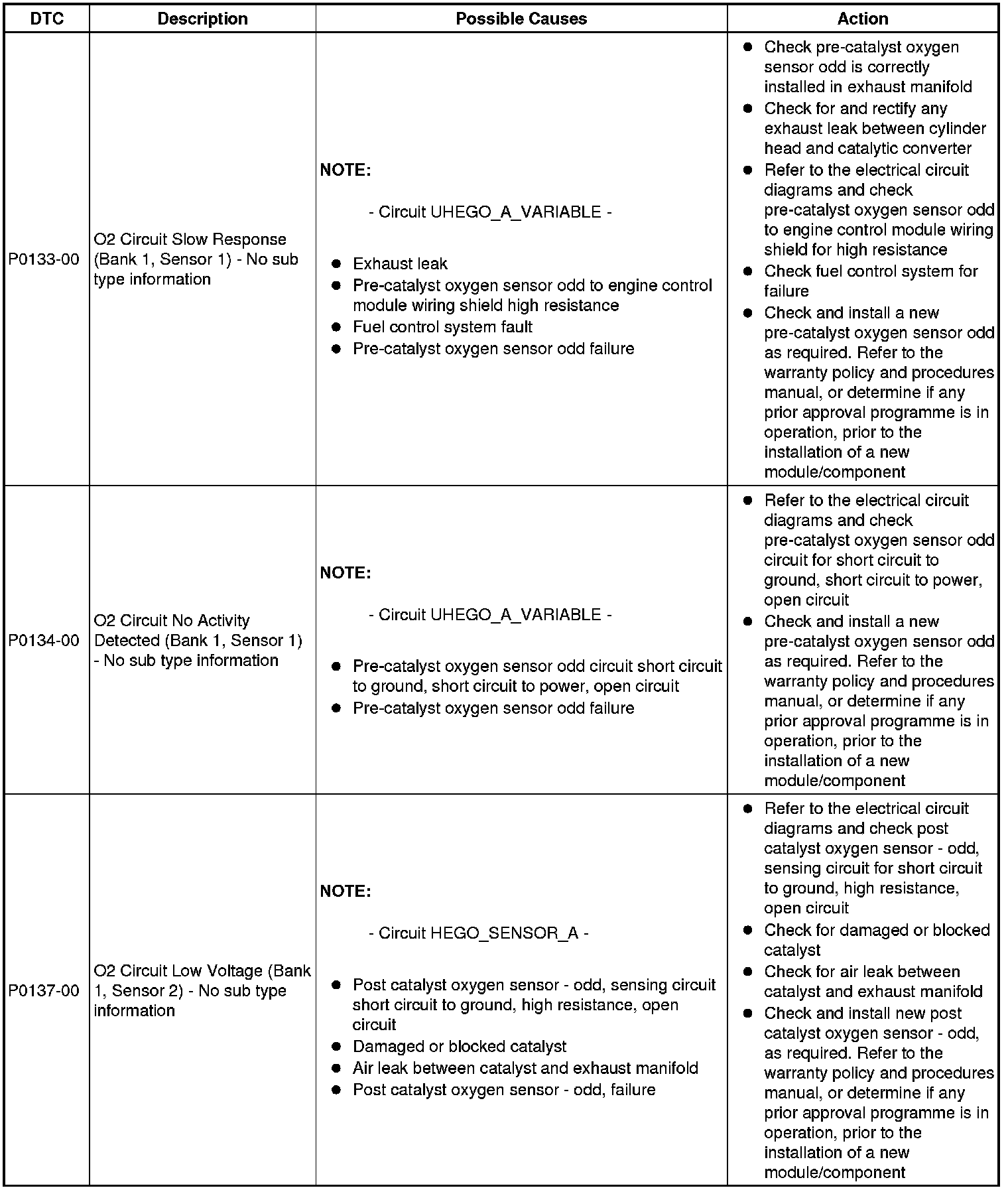 The table below lists all Diagnostic Trouble Codes (DTCs) that could be logged in the Engine Control Module, for additional Diagnosis and Testing information refer to the relevant Diagnosis and Testing Section. For additional information, refer to Electronic Engine Controls