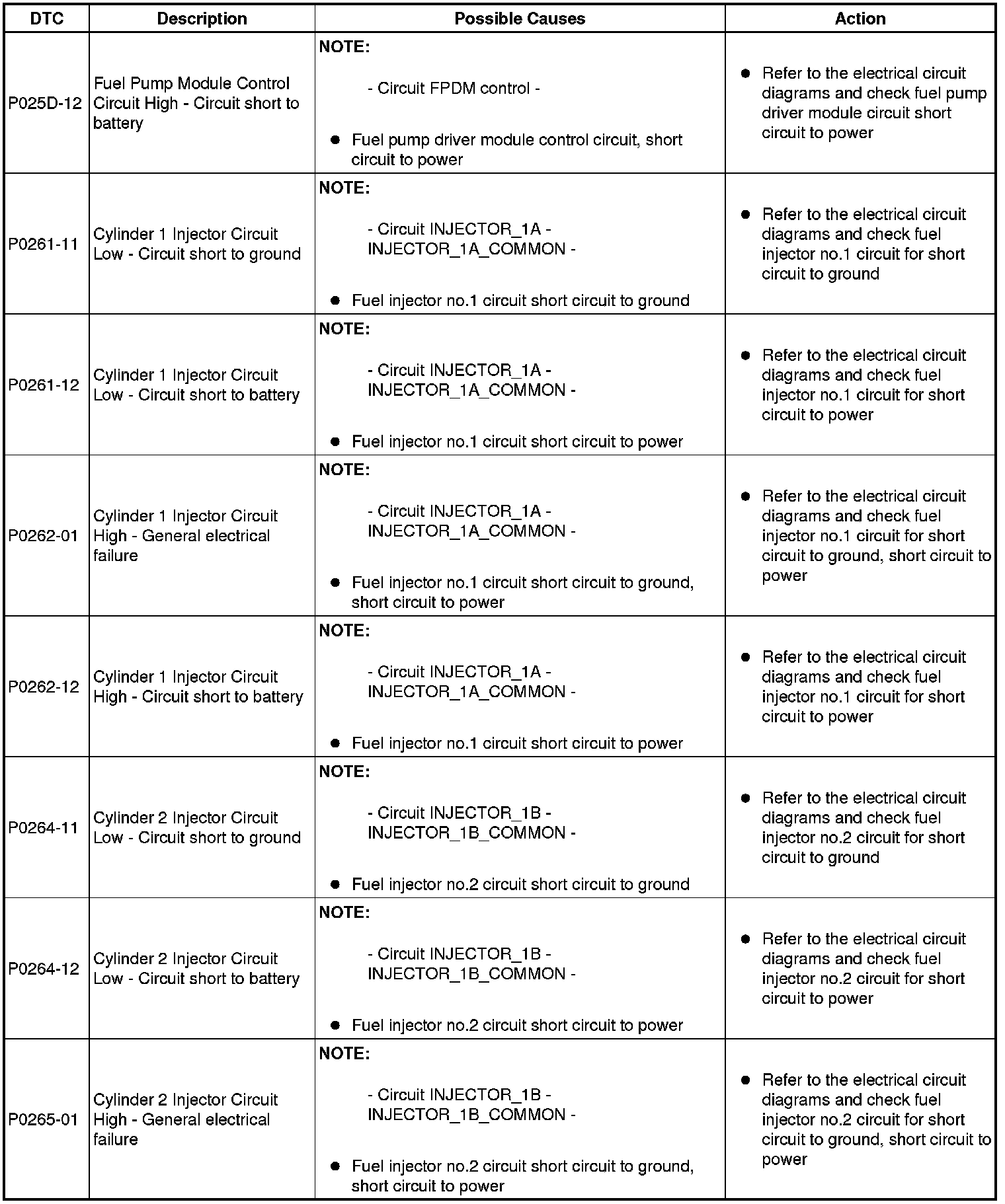 The table below lists all Diagnostic Trouble Codes (DTCs) that could be logged in the Engine Control Module, for additional Diagnosis and Testing information refer to the relevant Diagnosis and Testing Section. For additional information, refer to Electronic Engine Controls