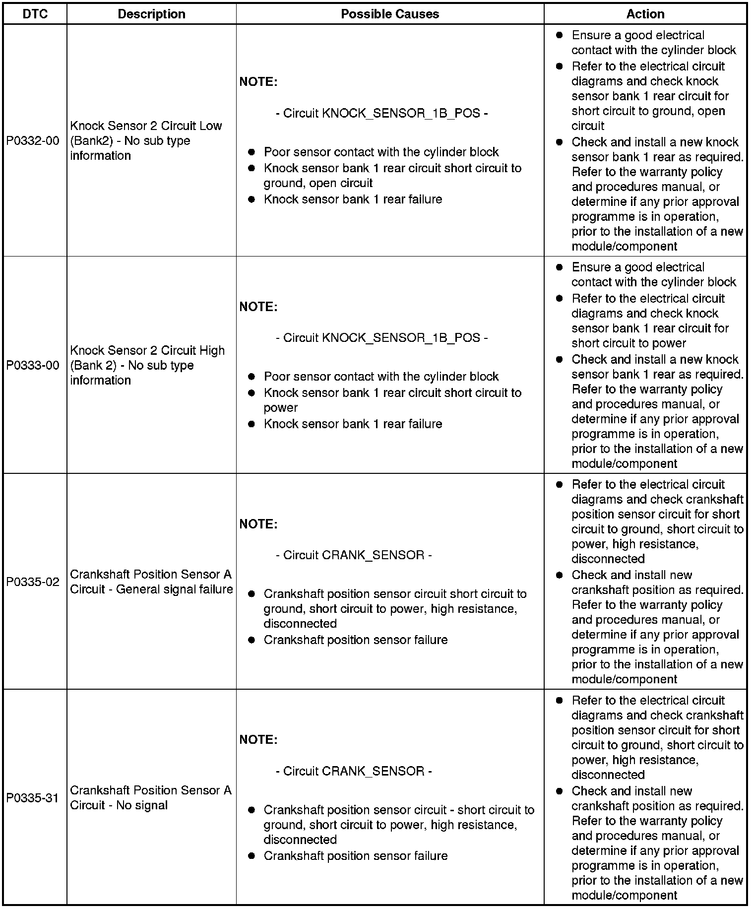 The table below lists all Diagnostic Trouble Codes (DTCs) that could be logged in the Engine Control Module, for additional Diagnosis and Testing information refer to the relevant Diagnosis and Testing Section. For additional information, refer to Electronic Engine Controls