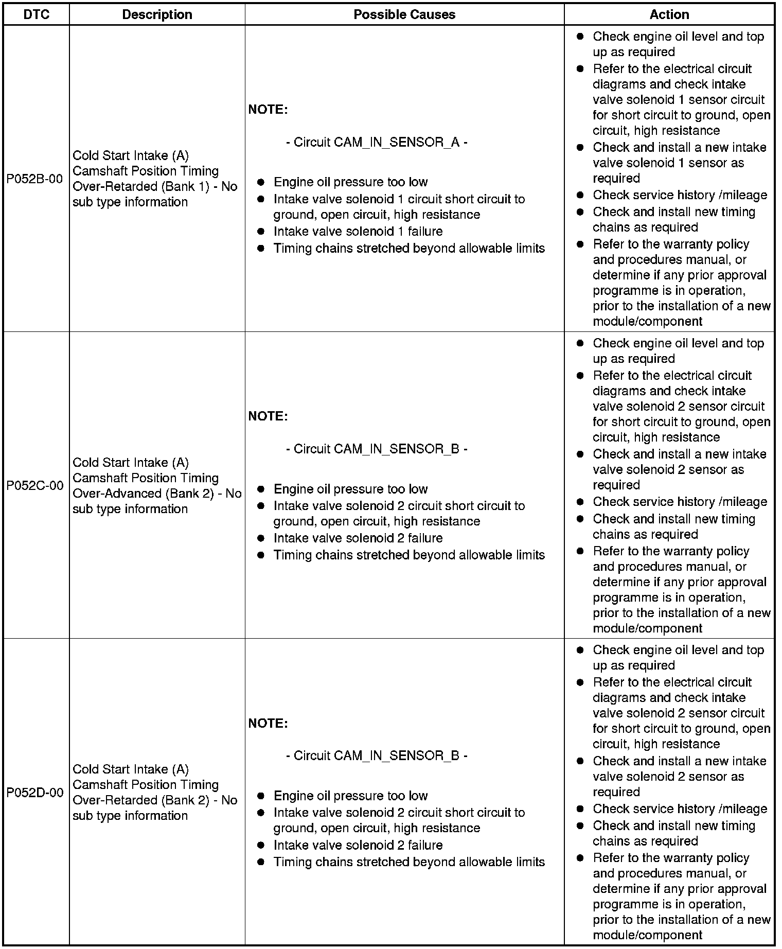 The table below lists all Diagnostic Trouble Codes (DTCs) that could be logged in the Engine Control Module, for additional Diagnosis and Testing information refer to the relevant Diagnosis and Testing Section. For additional information, refer to Electronic Engine Controls