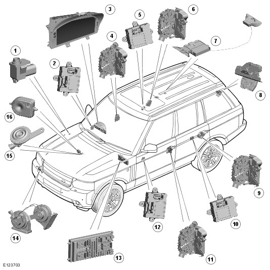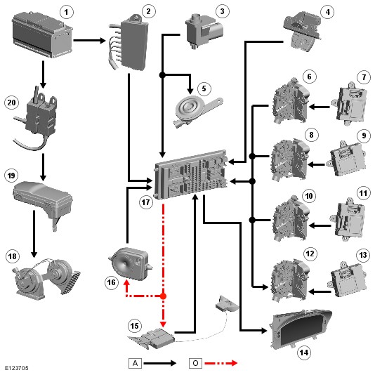 The BBUS is installed in the engine compartment on the RH (right-hand)side of the bulk head. Depending on the CJB (central junction box) configuration, the BBUS can be used to produce the audio acknowledgment for arming and disarming of the active anti-theft system as well as the audio warning after an alarm has been triggered.