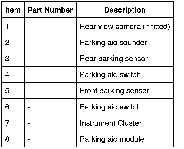 At low speed, the parking aid module uses the sensors to monitor the area around the bumpers, then outputs a warning on the parking aid sounder or the instrument cluster sounder if an object is detected within a monitored area. As well as detecting solid objects such as posts, walls and other vehicles, the system can also detect less solid objects such as a wire mesh fence. Objects close to the ground may escape detection but, because of their low height, will not foul the vehicle.