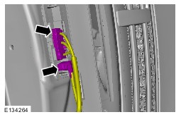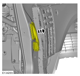 1 Remove the LH B-pillar trim panel. For additional information, refer to B-Pillar Trim Panel B-Pillar Trim Panel