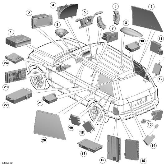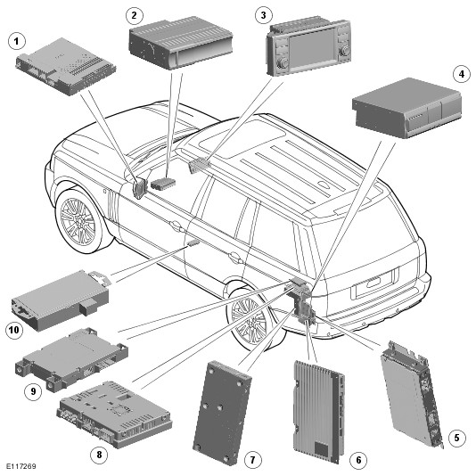 A replaced component requires its serial number to be programmed in the instrument cluster registry using Land Rover approved diagnostic equipment. If the instrument cluster is replaced, the complete system will not function until the instrument cluster is programmed with the component serial numbers using Land Rover approved diagnostic equipment.