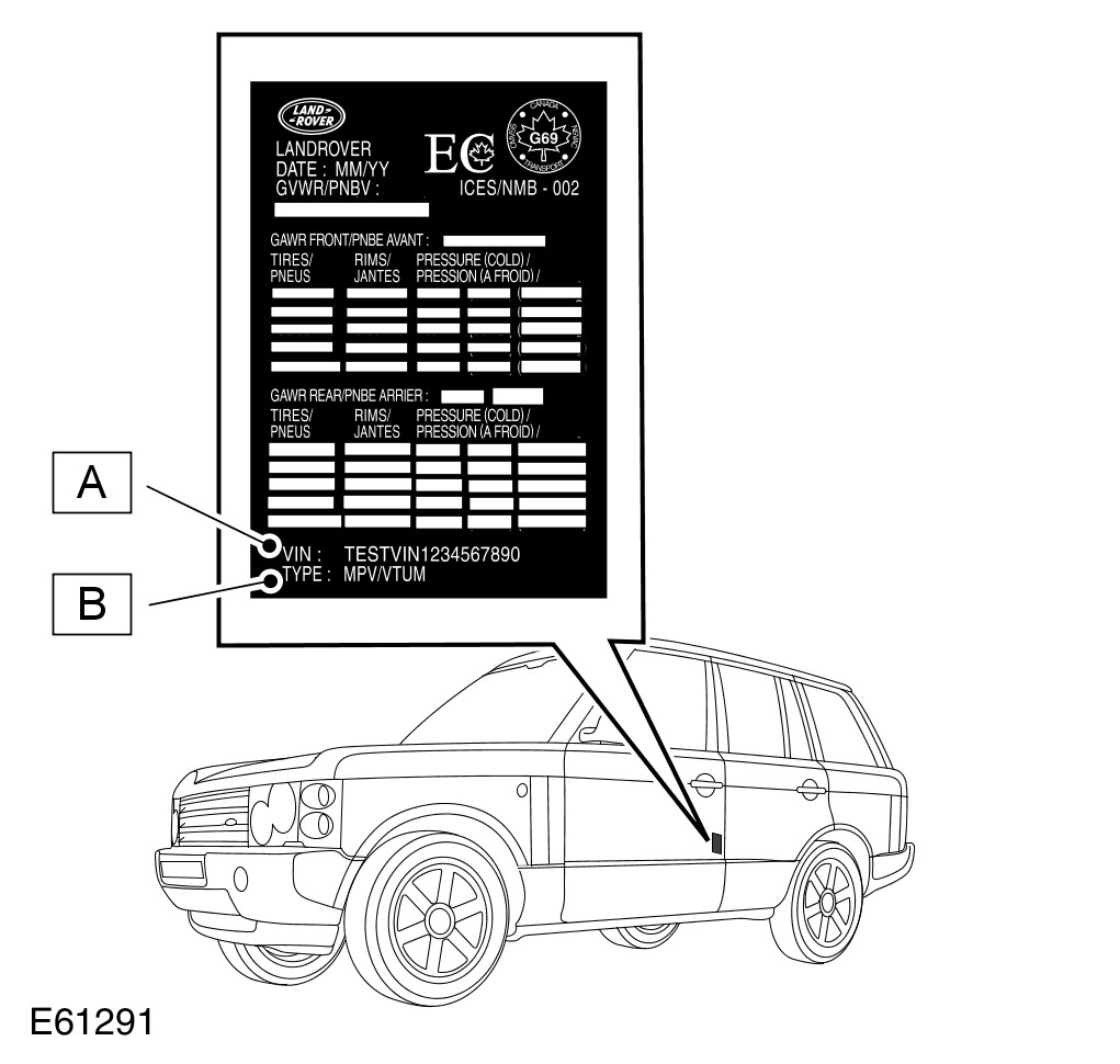 - 3. UK, Europe and ROW - Not NAS/Canada -On the VIN plate attached to the LH inner wing, forward of the suspension turret.
