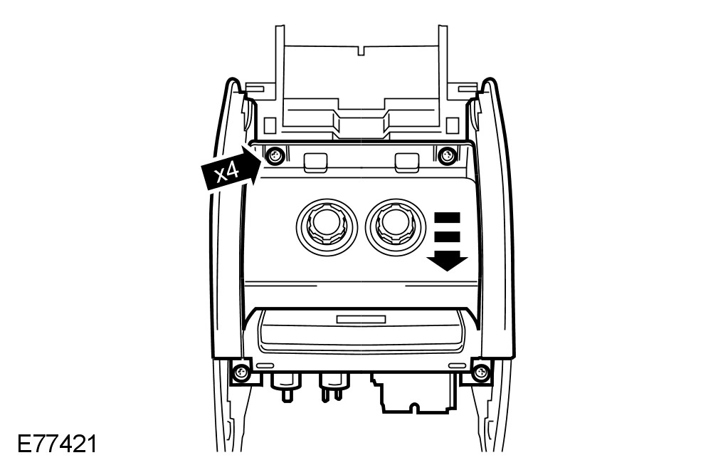 14 Remove the cellular phone cradle assembly lower trim panel.