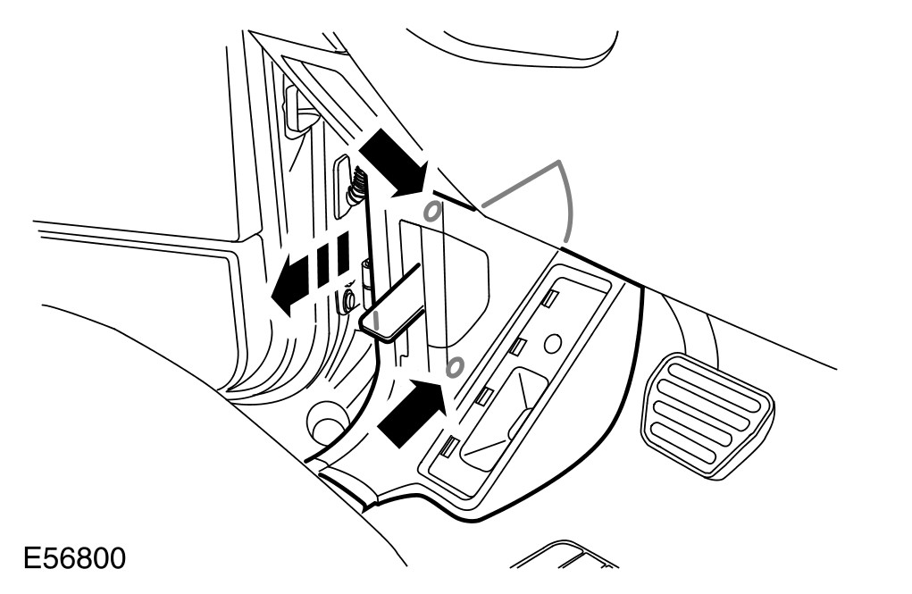 1 Remove the front scuff plate trim panel. For additional information, refer to Front Scuff Plate Trim Panel Service and Repair