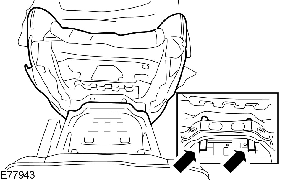 - Carefully release the 2 clips from the front seat head restraint guide tubes.