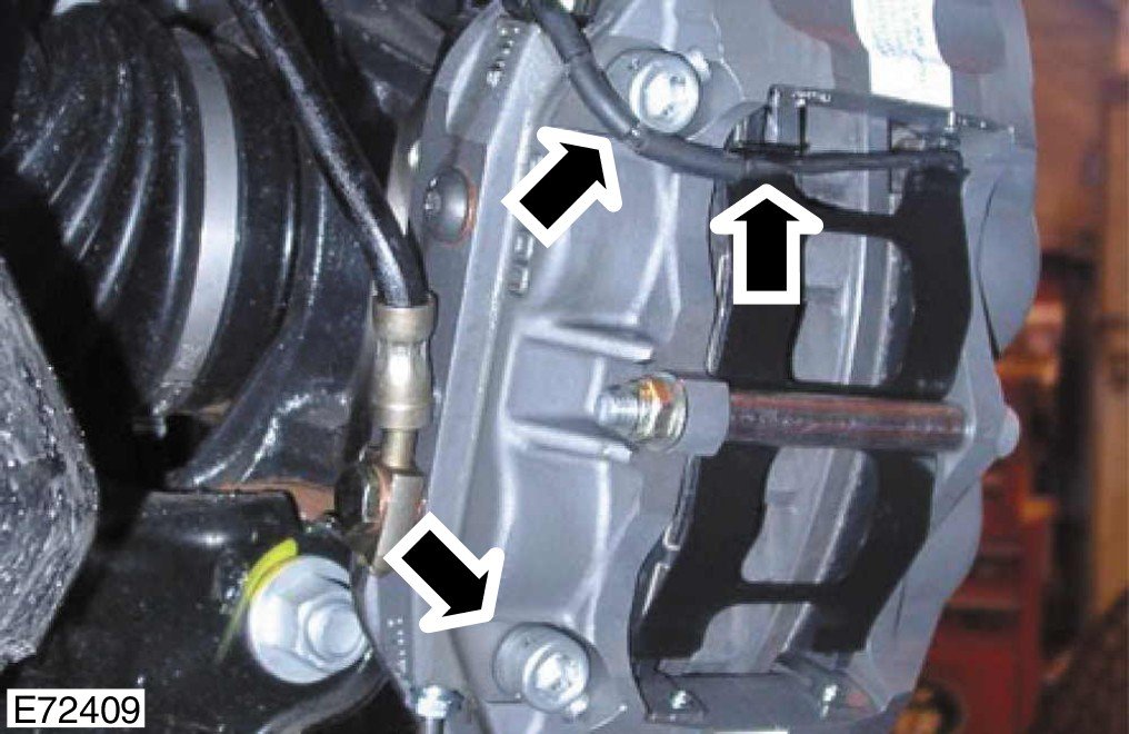 - Tighten the caliper to mounting screws to 108 Nm, (79 lbf.ft).