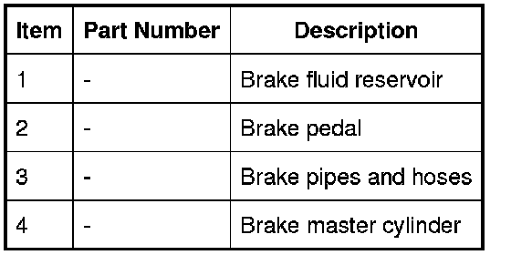 The brake fluid reservoir is located on top of the master cylinder assembly. The reservoir is internally divided to provide an independent supply of fluid to each brake circuit, and so prevent a single fluid leak from disabling both primary and secondary brake circuits. Should a failure occur in one circuit, the remaining circuit will still operate effectively, although brake pedal travel and vehicle braking distances will increase.