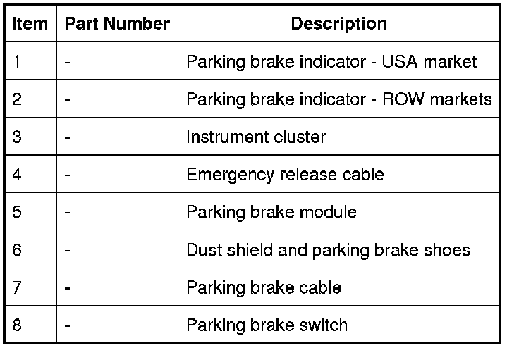 The parking brake is an electrically actuated system that operates drum brakes integrated into the rear brake discs. The parking brake system consists of: