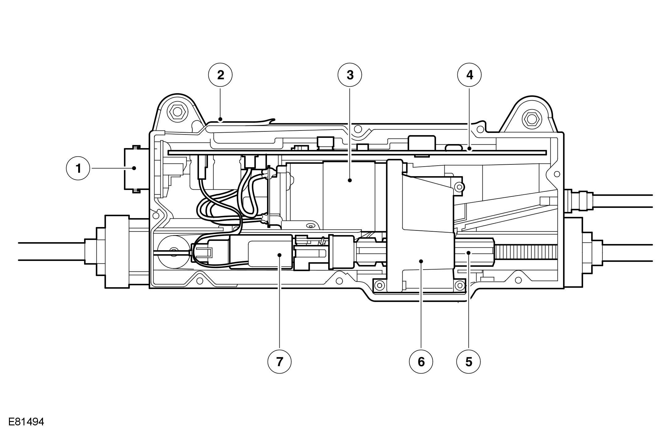 After the emergency release cable has been used to release the parking brake, the next time an apply selection is made with the parking brake switch, the parking brake module automatically runs through a latching procedure to reconnect the spline shaft with the force sensor. The parking brake module turns the spline shaft so that it moves towards the force sensor. The pawl of the spline shaft then re-engages with the spigot of the force sensor. A second apply selection with the parking brake switch is required to apply the parking brake.
