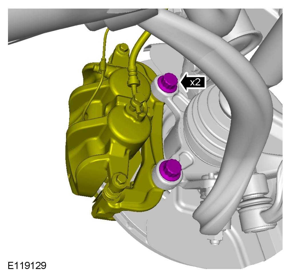 CAUTION: Do not allow the brake caliper to hang on the brake hose.
