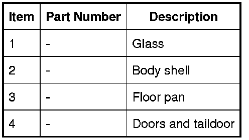 WARNING: The weight of the individual components fitted to the vehicle are far in excess of those fitted to the standard vehicle. As an example, the windscreen weighs approximately 100 Kg (220 lb) and the rear screen weighs approximately 56 kg (125 lb). Always make sure that you are aware of the weight of any component BEFORE attempting to remove it from the vehicle, and have suitable equipment available to assist you.