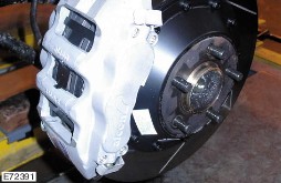 The braking system has been modified to compensate for the additional weight of the vehicle. Uprated 'Alcon' calipers are fitted with larger diameter, ventilated discs all-round. The diameter of the discs is increased from 342 mm (13.5 in) at the front and 353 mm (13.9 in) at the rear to 378 mm (14.88 in) all-round. Each caliper is fitted with two bleed screws and these are protected by tamper proof shields.