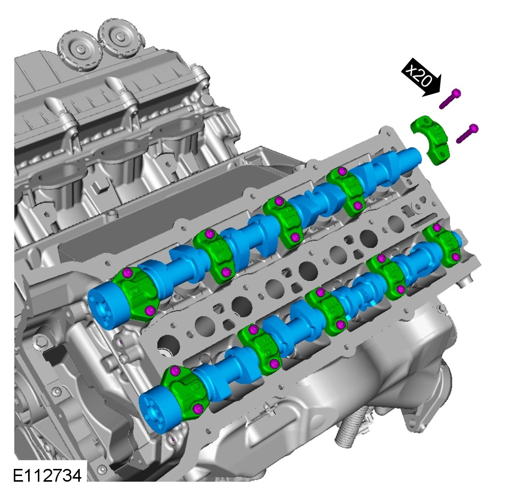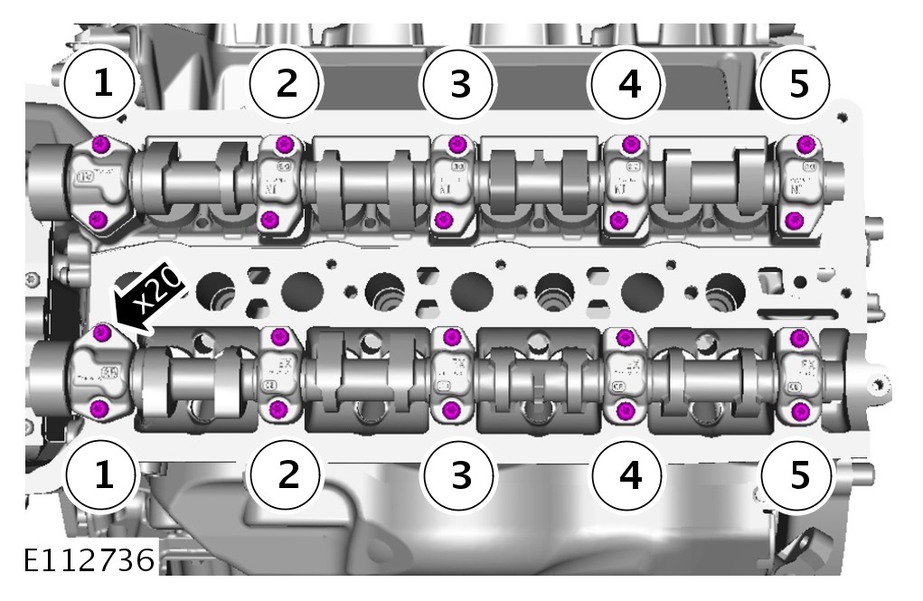 CAUTION: Evenly and progressively, release the camshaft bearing caps.