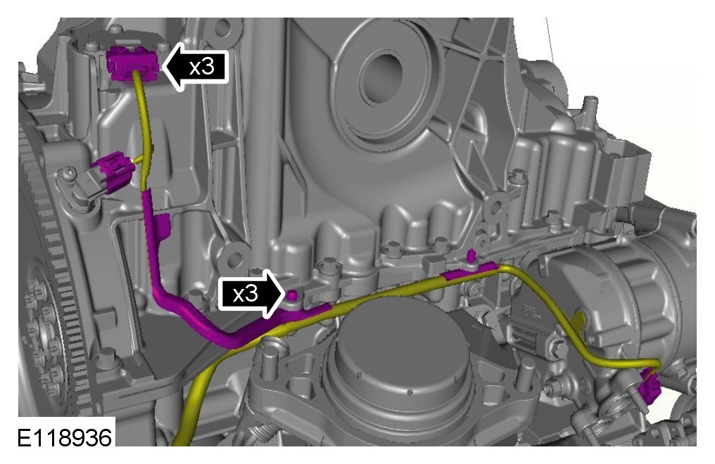 CAUTION: Care must be taken when positioning the fuel rail high-pressure fuel pump cover to one side.