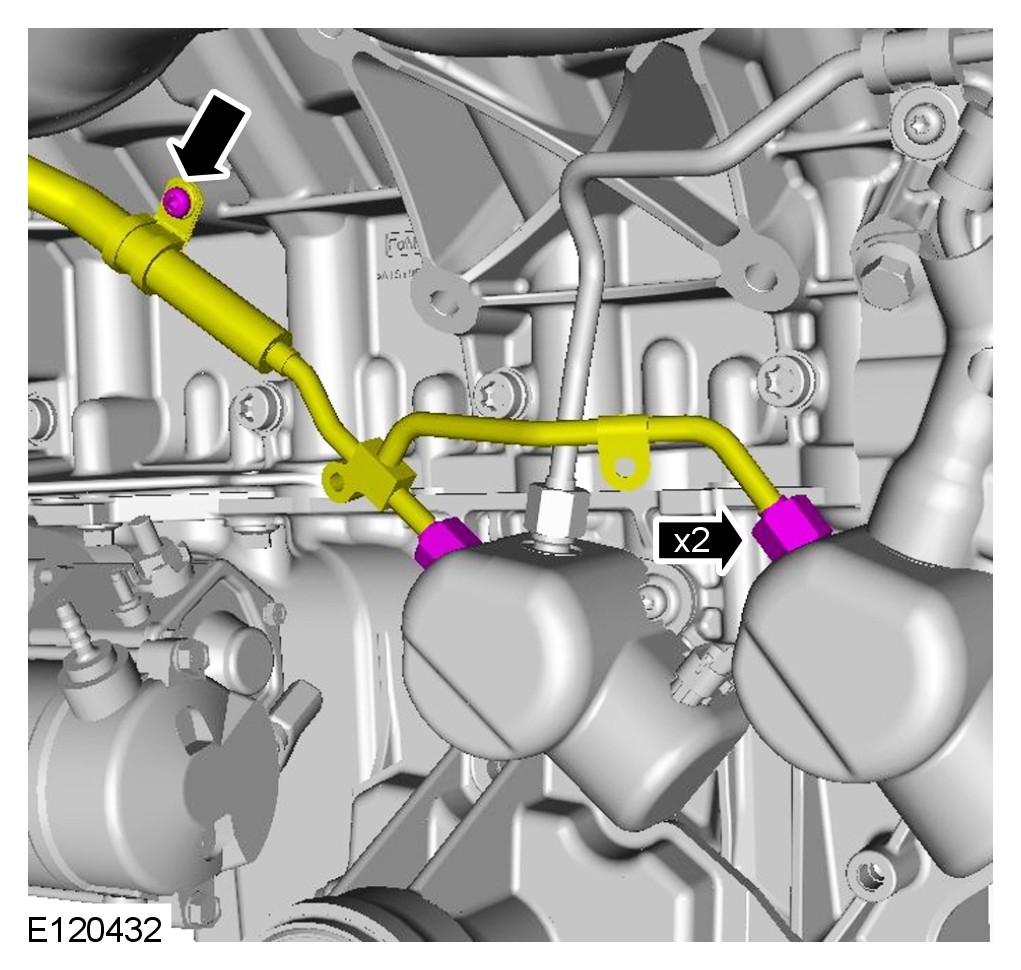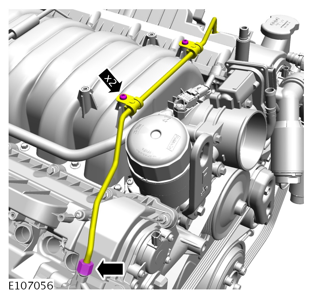 Fuel rail high-pressure fuel pump cover shown removed for clarity.