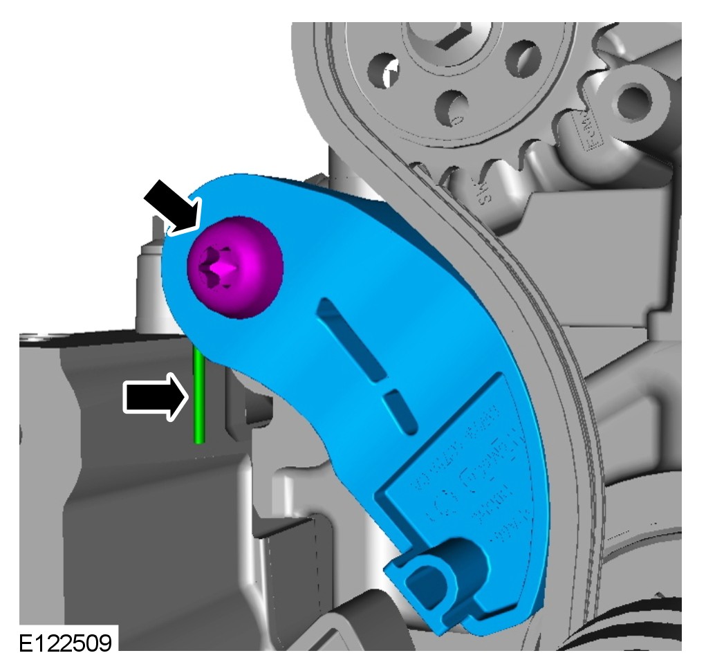4 Install the lower timing chain making sure the colored chain links align correctly with the fuel rail high-pressure fuel pumps camshaft and crankshaft sprocket markings.