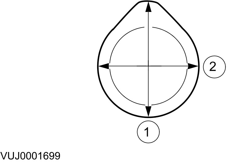 Measure the diameter (1) and diameter (2) with a vernier caliper. The difference in measurements is the lobe lift.