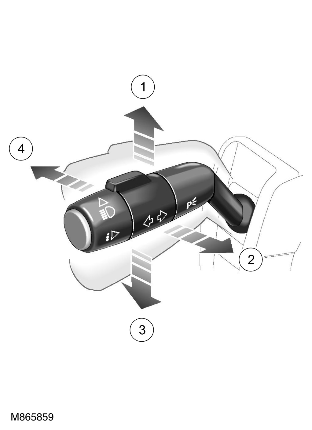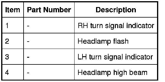 The left hand steering column multifunction switch is located on the left hand side of the steering column and controls the following functions: