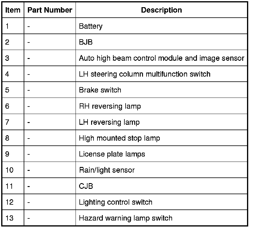 The hazard warning lamps use the front and rear turn signal indicator lamps as previously described. These are controlled by the CJB in response to a hazard warning lamp request from the instrument panel switch.