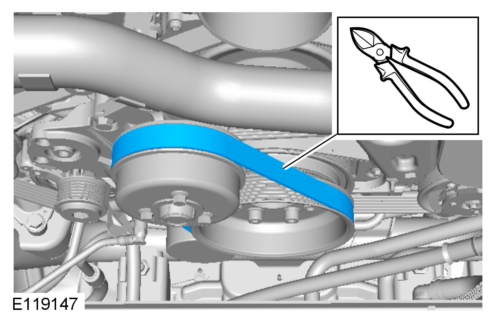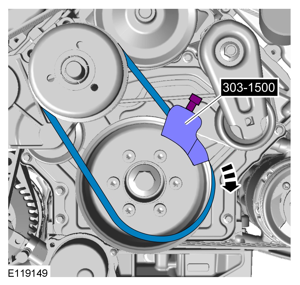2 Rotate the engine clockwise twice, making sure that the belt is seated on both pulleys correctly.