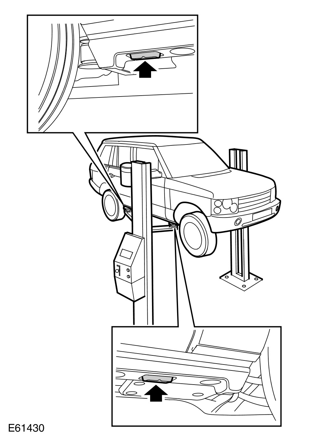 1. Position the vehicle with the centre of the lift pillars aligned approximately with the front of the driver/passenger seat cushions.