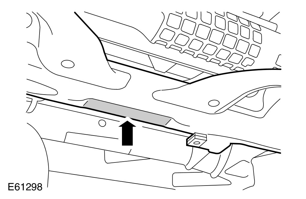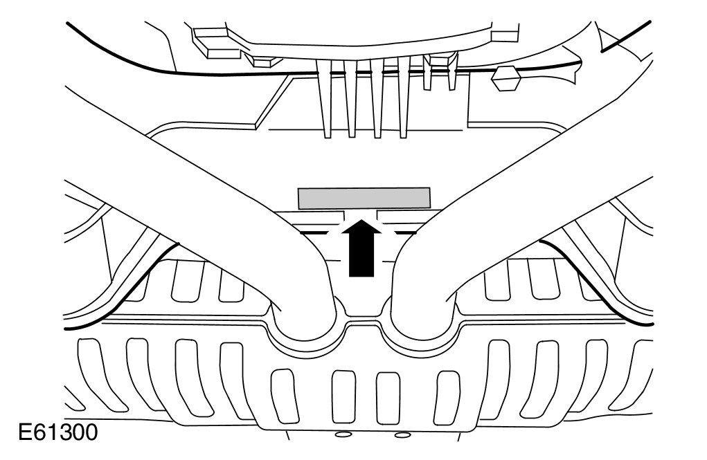 Position the lifting pad of the hydraulic jack under the centre of the rear sub-frame, rear cross member as shown.