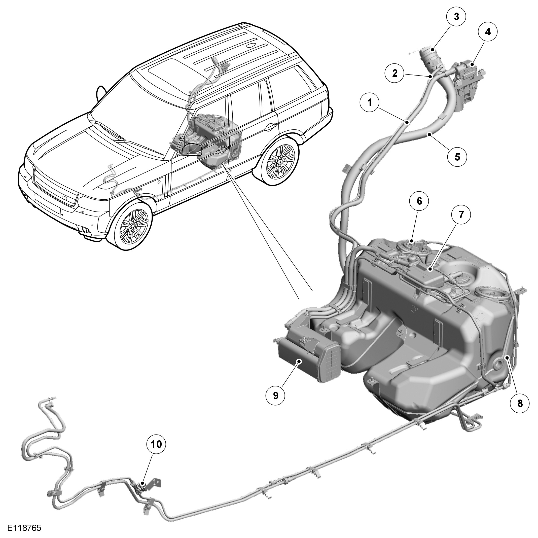5.0L V8 FUEL TANK AND LINES COMPONENT LOCATION (All except NAS)