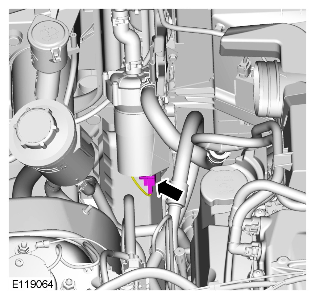 CAUTION: Engine coolant will damage the paint finished surfaces. If spilt, immediately remove the coolant and clean the area with water.