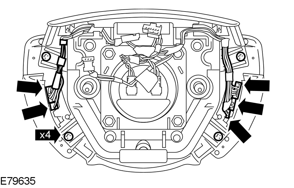 - Disconnect the 5 electrical connectors from the speed control switch and steering wheel audio controls.