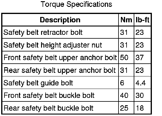 Seat Belt Systems: Specifications