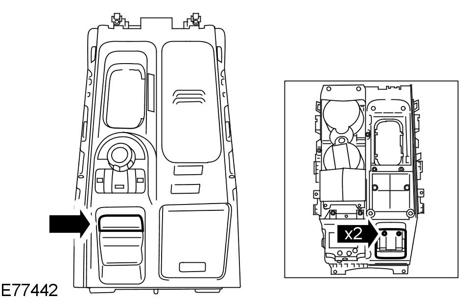 2 Install the floor console upper panel. For additional information, refer to Floor Console Upper Panel Floor Console Upper Panel
