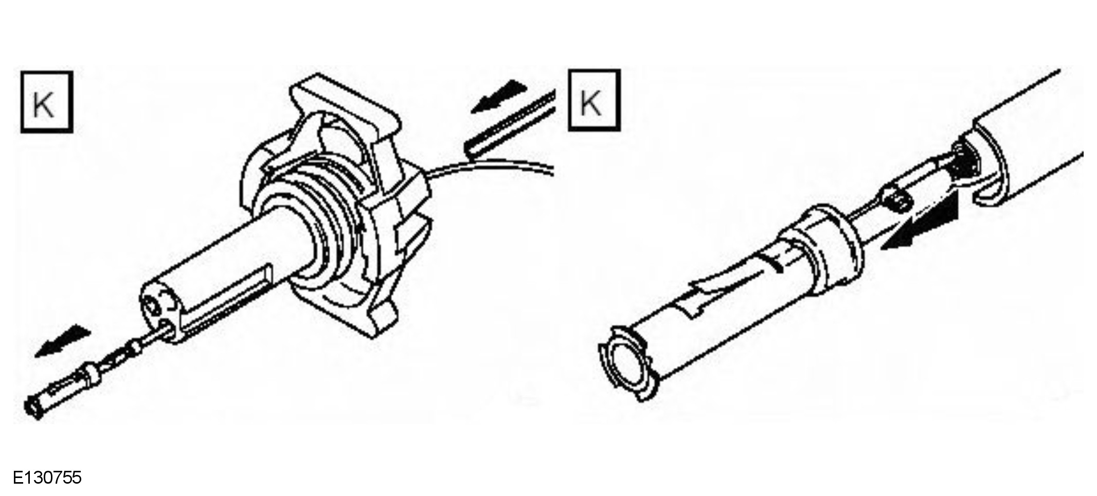 - Remove the faulty terminal from the electrical connector using the extractor tool and correct tip. Make sure that any anti-backout device is released before trying to remove the terminal.