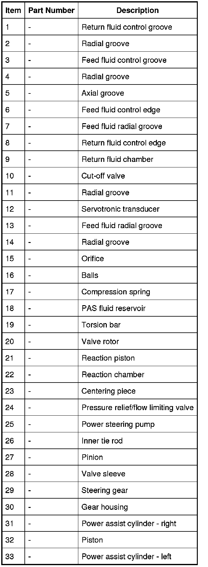As the vehicle is driven and the road speed increases, the CJB (central junction box) microprocessor analyses the road speed signals from the ABS (anti-lock brake system) module and reduces the amount of control current supplied to the Servotronic valve. The Servotronic valve reacts to the control current and opens the valve by an amount appropriate to the road speed. This allows a controlled fluid supply from the feed fluid radial groove to the reaction chamber. The orifice prevents the loss of large amounts of fluid to the return fluid chamber. The higher fluid pressure acting on the reaction piston causes compression of the balls which are located between the reaction piston and the centering piece which in turn is securely connected to the valve sleeve. When driving in a straight line, this has a positive effect on the exact centralizing of the steering valve. When the steering valve