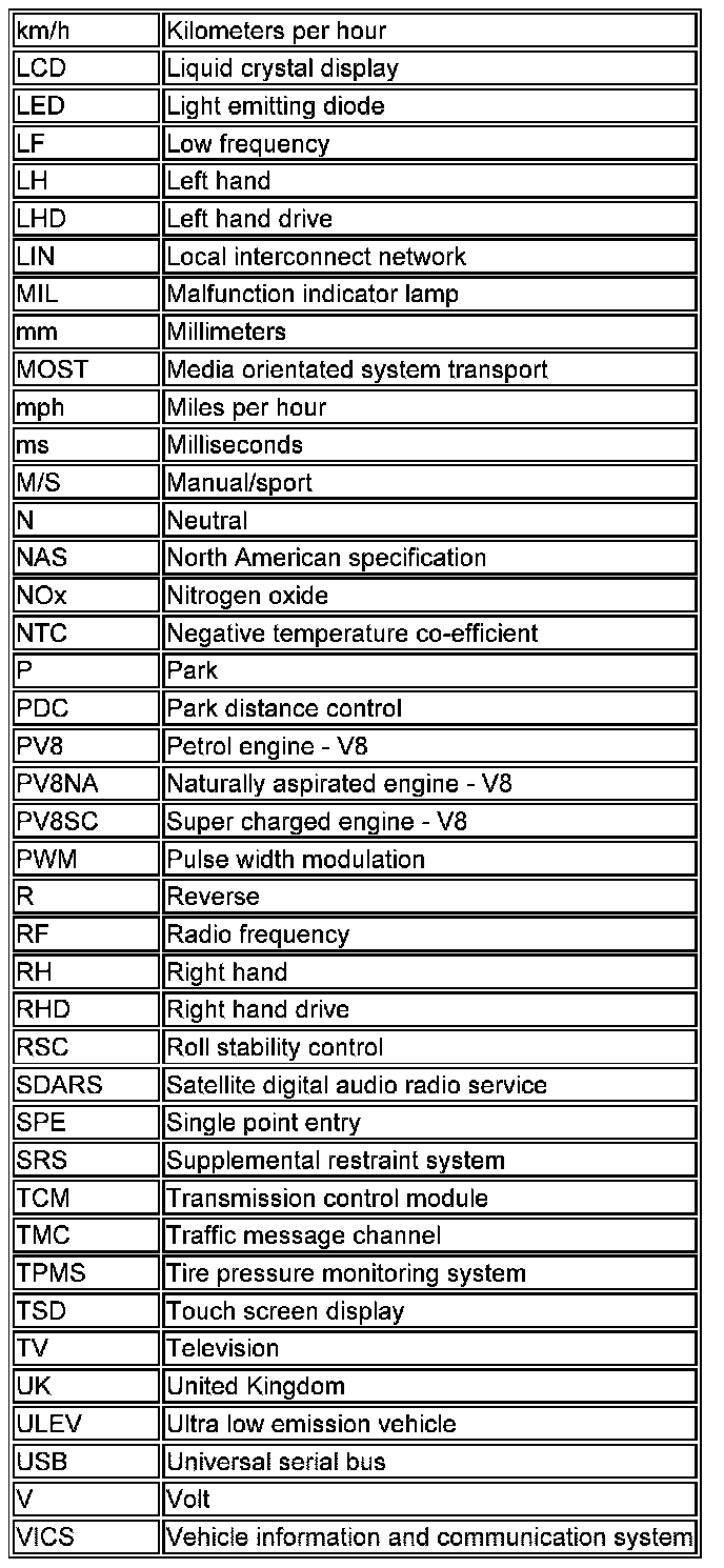 NOTE: References to the LH or RH side given in this document are made when viewing the vehicle from the rear.