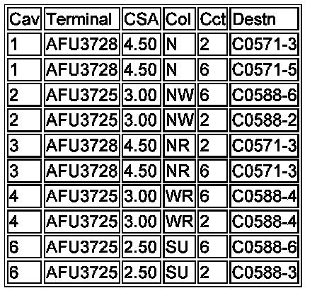 1. Cav: The connector pin (cavity) number.