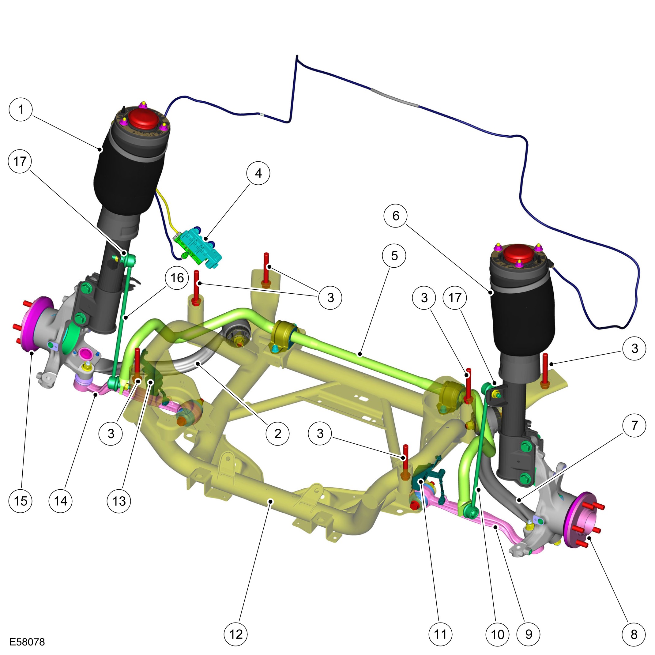 TDV8 and supercharged vehicles also feature mass attached to the top mount. The mass has no function with the vehicle suspension but is fitted to improve NVH produced by the braking system.