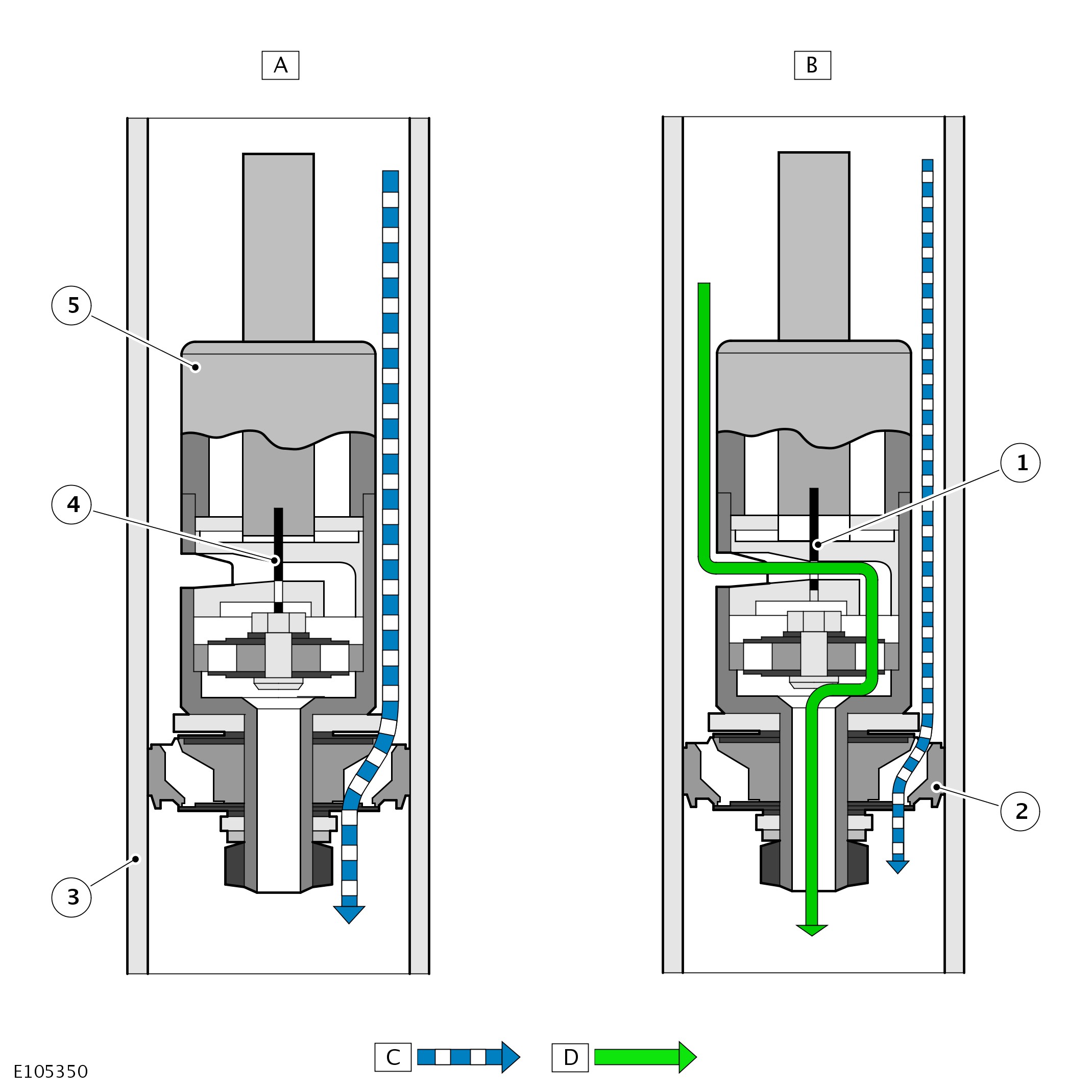 The solenoid in each damper is operated by a 526 Hz PWM signal from the ADM. When fully energized, the ADM applies a 1.5 A current to operate the damper in the soft setting. When de-energized (0.0 A) the damper is in the firm setting. The current varies continuously as required to increase and decrease the damping individually in each of the dampers.