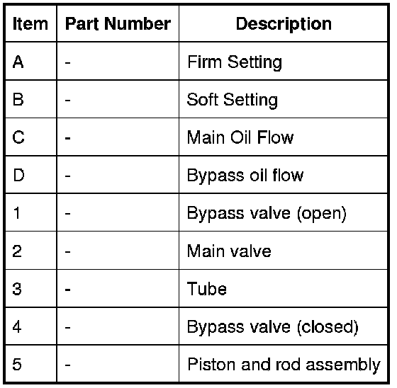 In the firm setting oil flows through the main (firm) valve only, but when the bypass is opened by any amount the oil flows through both valves in a pressure balance. When fully energized the solenoid moves the armature and therefore the slider to the maximum extension and opens the orifice completely. The damper operates continuously between these two boundary conditions.