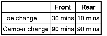 The suspension geometry changes when moving from off-road to access heights. See the following table for data:
