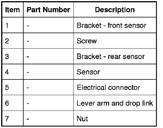 A height sensor is fitted in each corner of the vehicle to monitor the ride height of the vehicle. The sensors are mounted on the front and rear subframes, with a mechanical link to the suspension lower arms. There are four different types of sensor fitted.