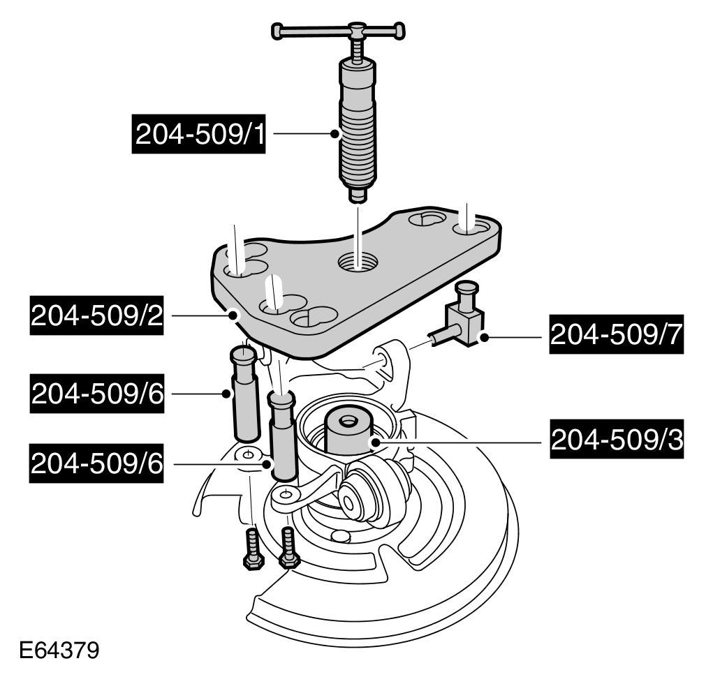 9 Using a bearing separator and the special tool, remove the rear wheel bearing inner track.
