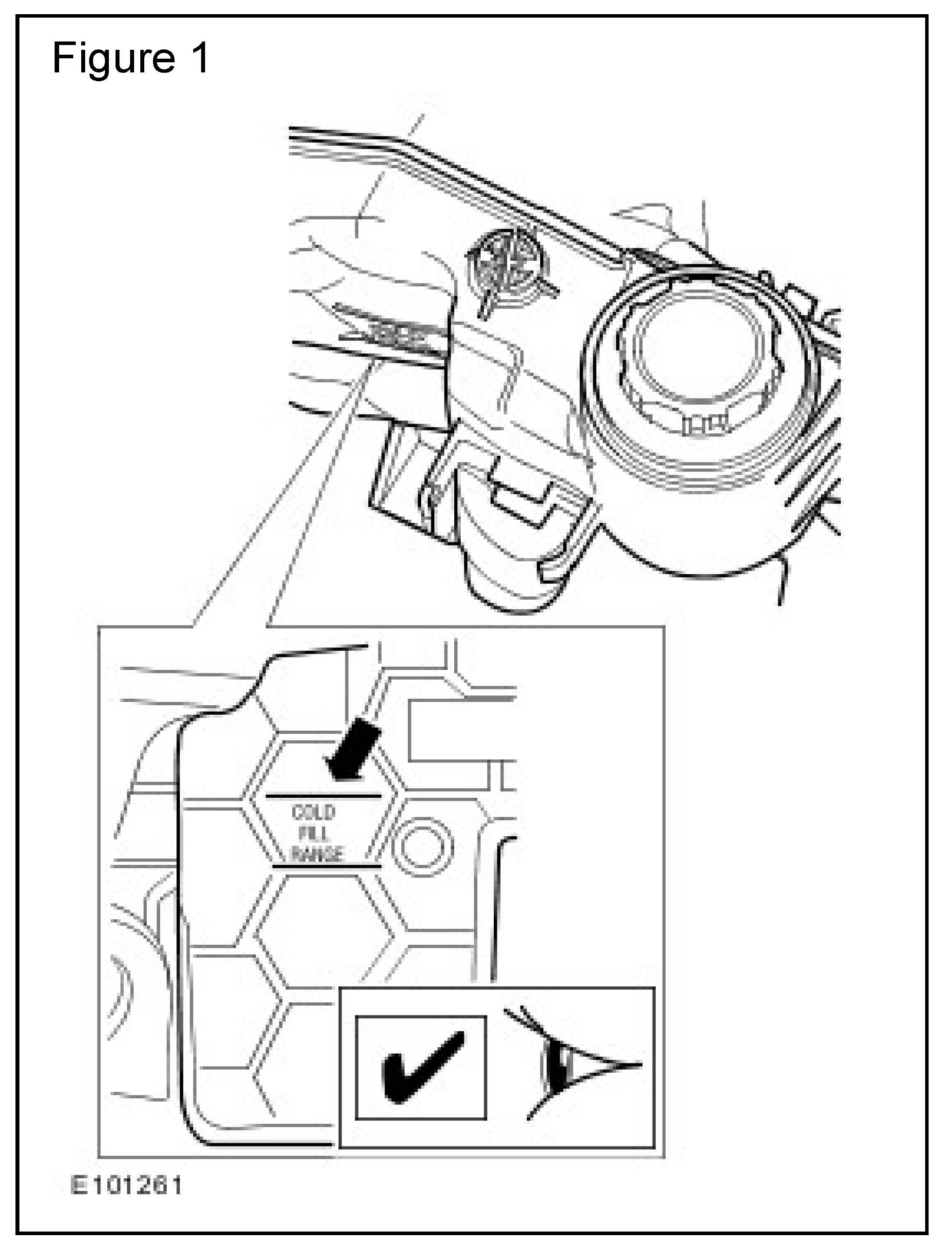 2. Verify the coolant level is 30 mm (1.2 in) above the 'COLD FILL RANGE'. (Figure 2)