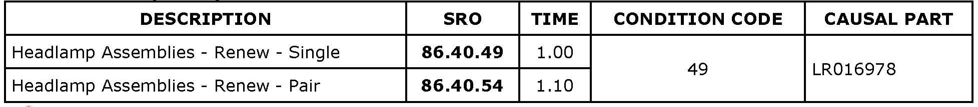 LR026164 Headlamp assembly - LH - NAS Quantity: 1