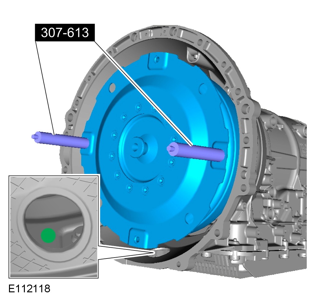 CAUTION: Make sure the torque converter is fully located into the oil pump drive.